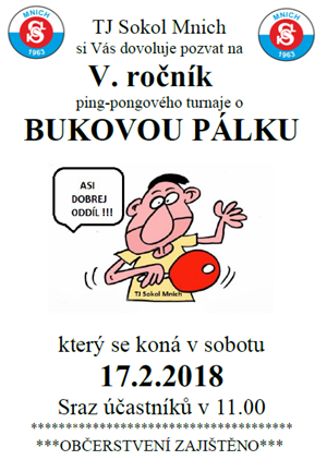 Tělovýchodná jednota Sokol Mnich si Vás dovoluje pozvat na 5. ročník ping-pongového turnaje.
